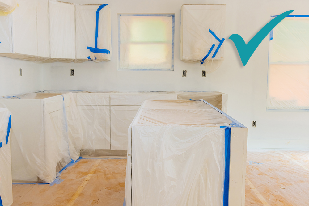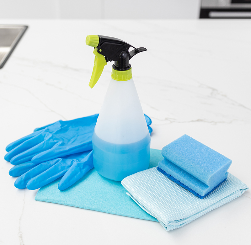 Wiping down all furniture, cabinets, appliances, countertops, and fixtures.